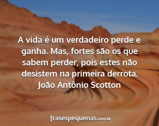 A vida é um verdadeiro perde e ganha. Mas, fortes são os que sabem perder, pois estes não desistem na primeira derrota.João Antônio Scotton