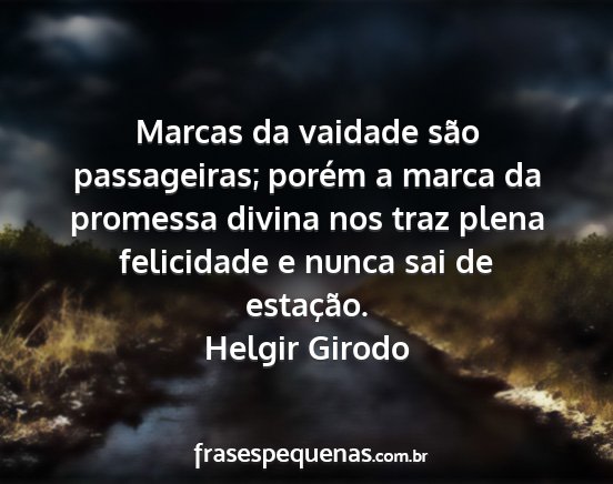 Marcas da vaidade são passageiras; porém a marca da promessa divina nos traz plena felicidade e nunca sai de estação.Helgir Girodo