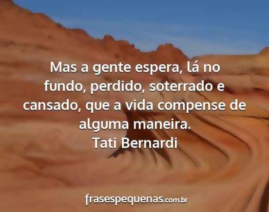 Mas a gente espera, lá no fundo, perdido, soterrado e cansado, que a vida compense de alguma maneira.Tati Bernardi