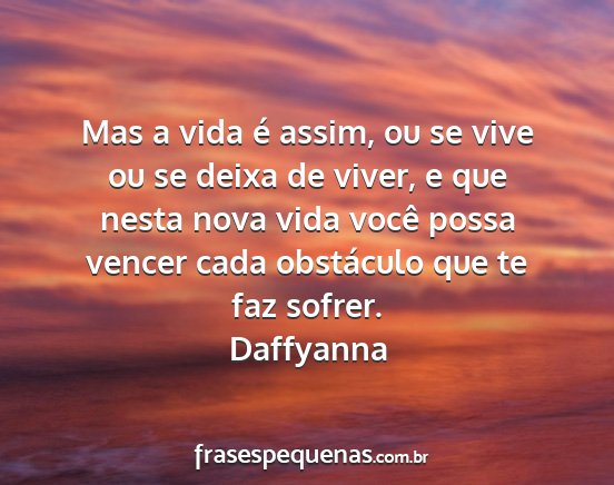 Mas a vida é assim, ou se vive ou se deixa de viver, e que nesta nova vida você possa vencer cada obstáculo que te faz sofrer.Daffyanna