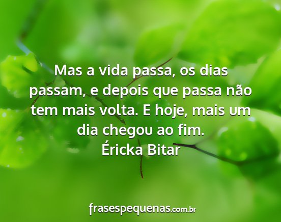 Mas a vida passa, os dias passam, e depois que passa não tem mais volta. E hoje, mais um dia chegou ao fim.Éricka Bitar