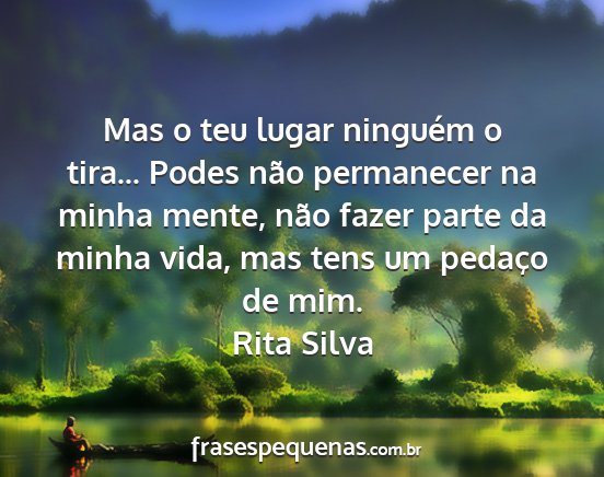 Mas o teu lugar ninguém o tira... Podes não permanecer na minha mente, não fazer parte da minha vida, mas tens um pedaço de mim.Rita Silva