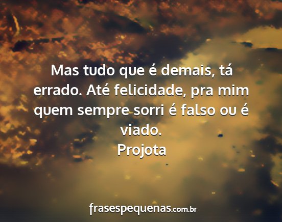 Mas tudo que é demais, tá errado. Até felicidade, pra mim quem sempre sorri é falso ou é viado.Projota