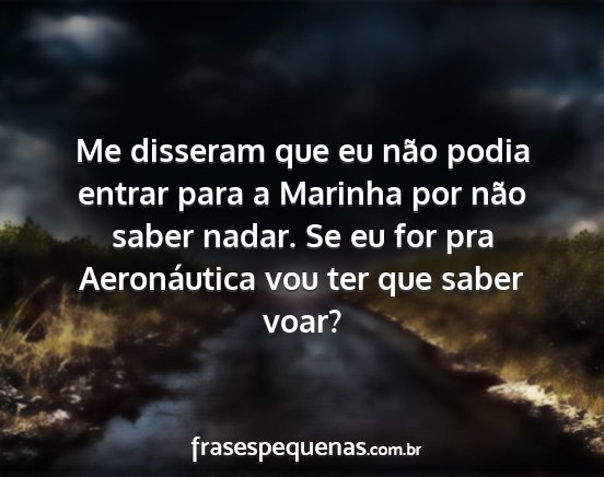 Me disseram que eu não podia entrar para a Marinha por não saber nadar. Se eu for pra Aeronáutica vou ter que saber voar?