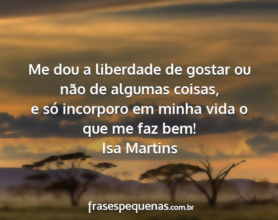e só incorporo em minha vida o que me faz bem!Isa Martins