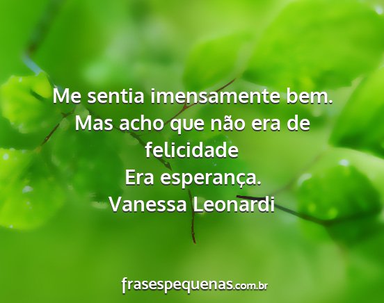 Me sentia imensamente bem. Mas acho que...