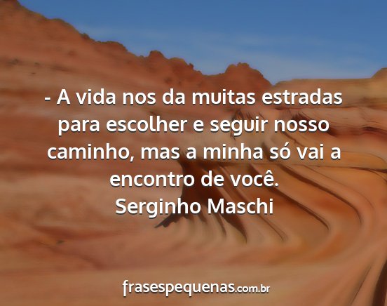 - A vida nos da muitas estradas para escolher e seguir nosso caminho, mas a minha só vai a encontro de você.Serginho Maschi