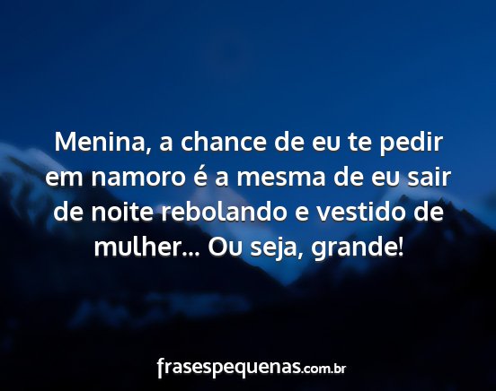 Menina, a chance de eu te pedir em namoro é a mesma de eu sair de noite rebolando e vestido de mulher... Ou seja, grande!