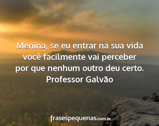 Menina, se eu entrar na sua vida você facilmente vai perceber por que nenhum outro deu certo.Professor Galvão