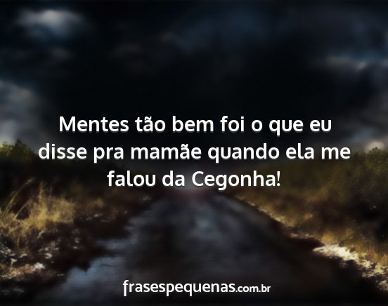 Mentes tão bem foi o que eu disse pra mamãe quando ela me falou da Cegonha!
