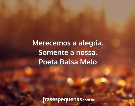 Merecemos a alegria. Somente a nossa.