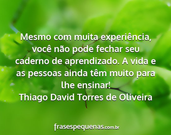 Mesmo com muita experiência, você não pode fechar seu caderno de aprendizado. A vida e as pessoas ainda têm muito para lhe ensinar!Thiago David Torres de Oliveira
