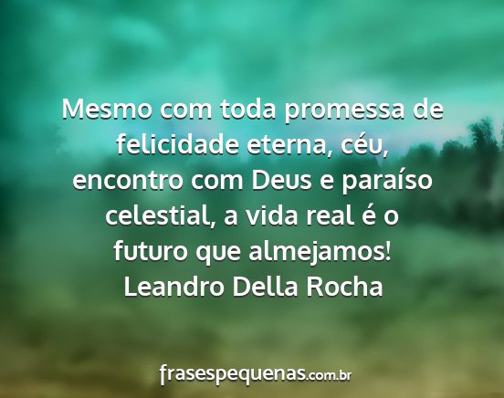 Mesmo com toda promessa de felicidade eterna, céu, encontro com Deus e paraíso celestial, a vida real é o futuro que almejamos!Leandro Della Rocha