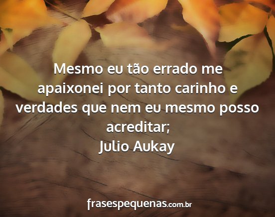 Mesmo eu tão errado me apaixonei por tanto carinho e verdades que nem eu mesmo posso acreditar;Julio Aukay