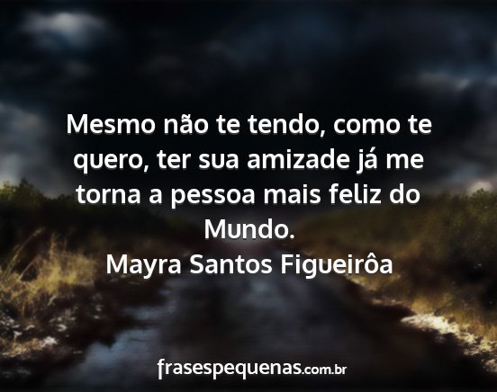Mesmo não te tendo, como te quero, ter sua amizade já me torna a pessoa mais feliz do Mundo.Mayra Santos Figueirôa