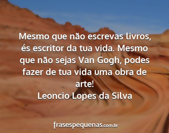 Mesmo que não escrevas livros, és escritor da tua vida. Mesmo que não sejas Van Gogh, podes fazer de tua vida uma obra de arte!Leoncio Lopes da Silva