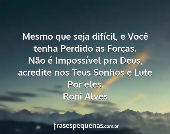 Não é Impossível pra Deus, acredite nos Teus Sonhos e Lute Por eles.Roni Alves