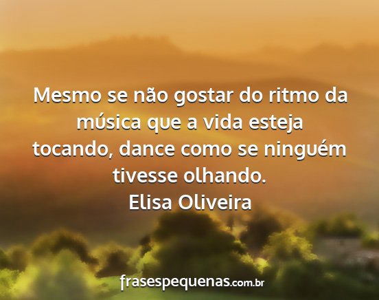 Mesmo se não gostar do ritmo da música que a vida esteja tocando, dance como se ninguém tivesse olhando.Elisa Oliveira