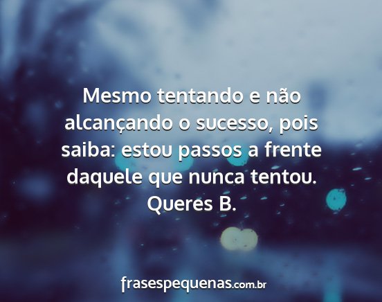 Mesmo tentando e não alcançando o sucesso, pois saiba: estou passos a frente daquele que nunca tentou.Queres B.