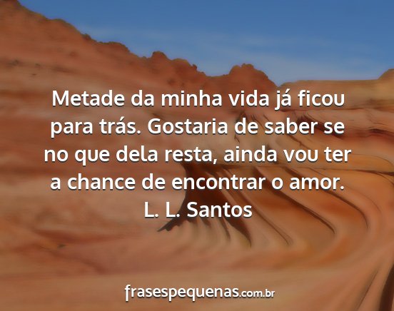 Metade da minha vida já ficou para trás. Gostaria de saber se no que dela resta, ainda vou ter a chance de encontrar o amor.L. L. Santos