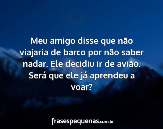 Meu amigo disse que não viajaria de barco por não saber nadar. Ele decidiu ir de avião. Será que ele já aprendeu a voar?