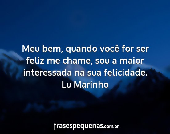 Meu bem, quando você for ser feliz me chame, sou a maior interessada na sua felicidade.
