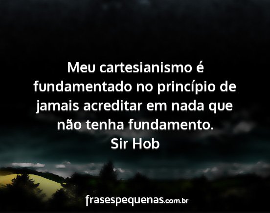 Meu cartesianismo é fundamentado no princípio de jamais acreditar em nada que não tenha fundamento.Sir Hob