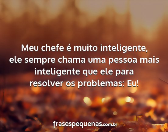 Meu chefe é muito inteligente, ele sempre chama uma pessoa mais inteligente que ele para resolver os problemas: Eu!
