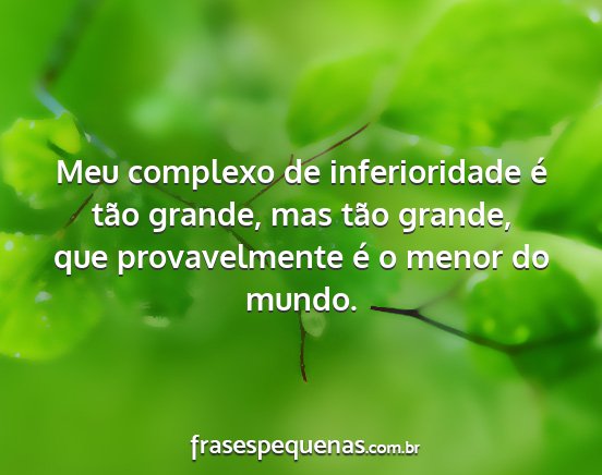 Meu complexo de inferioridade é tão grande, mas tão grande, que provavelmente é o menor do mundo.