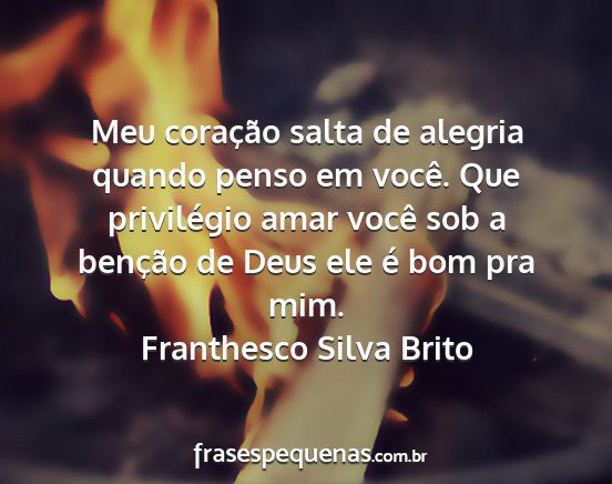 Meu coração salta de alegria quando penso em você. Que privilégio amar você sob a benção de Deus ele é bom pra mim.Franthesco Silva Brito