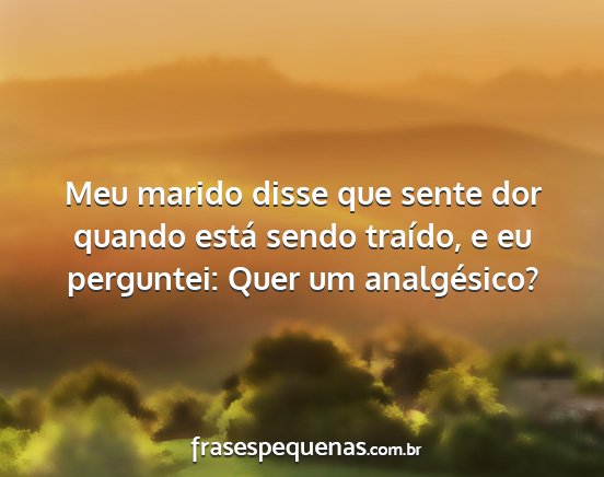 Meu marido disse que sente dor quando está sendo traído, e eu perguntei: Quer um analgésico?
