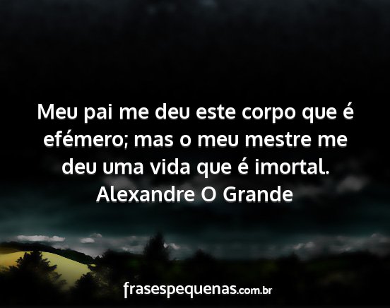 Meu pai me deu este corpo que é efémero; mas o meu mestre me deu uma vida que é imortal.Alexandre O Grande