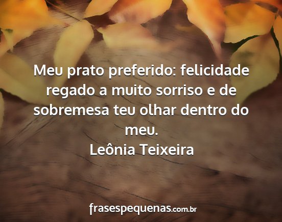 Meu prato preferido: felicidade regado a muito sorriso e de sobremesa teu olhar dentro do meu.Leônia Teixeira