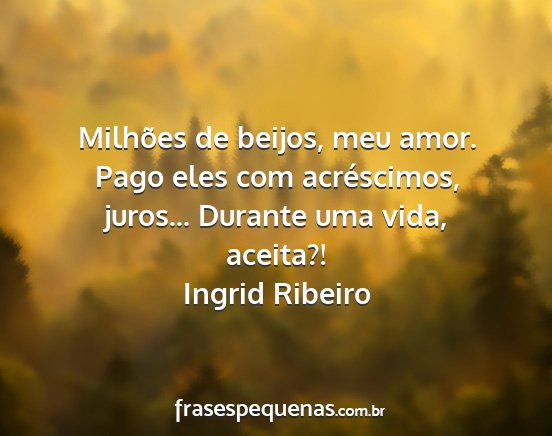 Milhões de beijos, meu amor. Pago eles com acréscimos, juros... Durante uma vida, aceita?!Ingrid Ribeiro