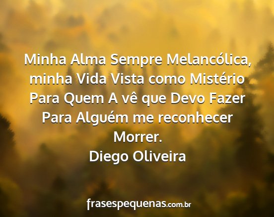 Minha Alma Sempre Melancólica, minha Vida Vista como Mistério Para Quem A vê que Devo Fazer Para Alguém me reconhecer Morrer.Diego Oliveira