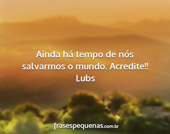 Ainda há tempo de nós salvarmos o mundo. Acredite!!