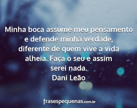 Minha boca assume meu pensamento e defende minha verdade, diferente de quem vive a vida alheia. Faça o seu e assim serei nada.Dani Leão