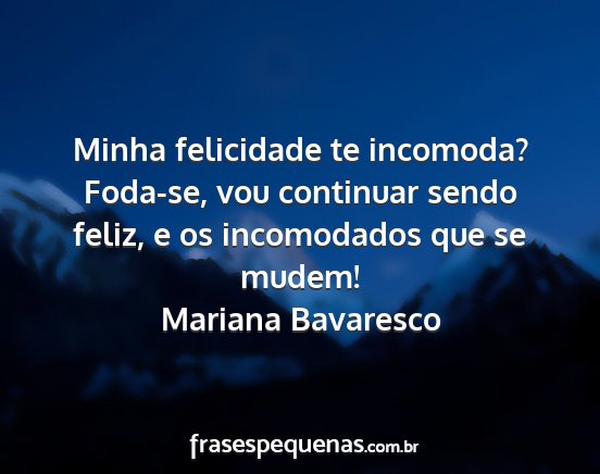 Minha felicidade te incomoda? Foda-se, vou continuar sendo feliz, e os incomodados que se mudem!Mariana Bavaresco