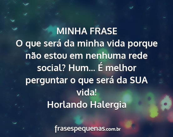 O que será da minha vida porque não estou em nenhuma rede social? Hum... É melhor perguntar o que será da SUA vida!Horlando Halergia