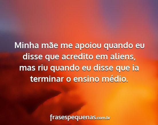 Minha mãe me apoiou quando eu disse que acredito em aliens, mas riu quando eu disse que ia terminar o ensino médio.