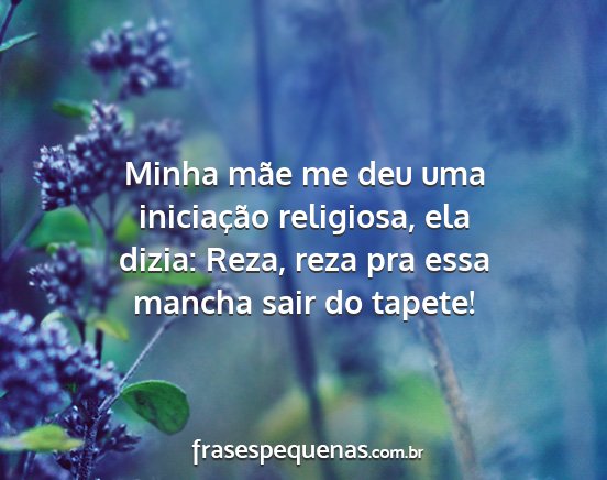 Minha mãe me deu uma iniciação religiosa, ela dizia: Reza, reza pra essa mancha sair do tapete!