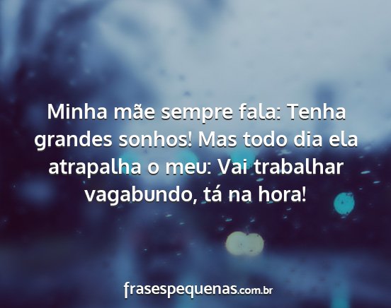 Minha mãe sempre fala: Tenha grandes sonhos! Mas todo dia ela atrapalha o meu: Vai trabalhar vagabundo, tá na hora!