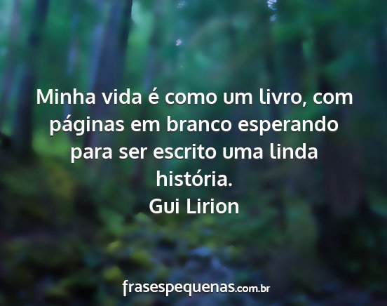 Minha vida é como um livro, com páginas em branco esperando para ser escrito uma linda história.Gui Lirion