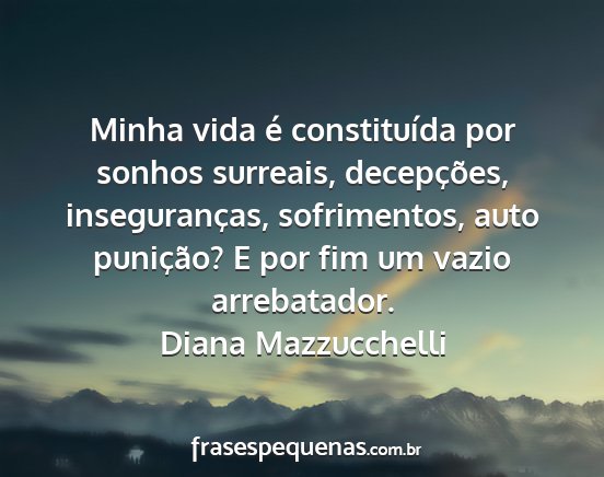 Minha vida é constituída por sonhos surreais, decepções, inseguranças, sofrimentos, auto punição? E por fim um vazio arrebatador.Diana Mazzucchelli