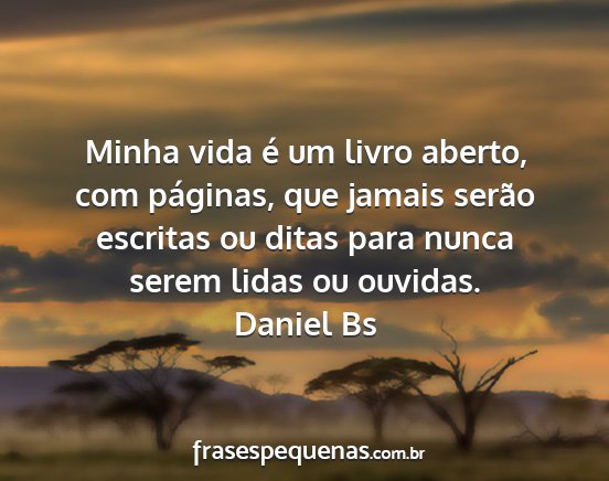 Minha vida é um livro aberto, com páginas, que jamais serão escritas ou ditas para nunca serem lidas ou ouvidas.Daniel Bs