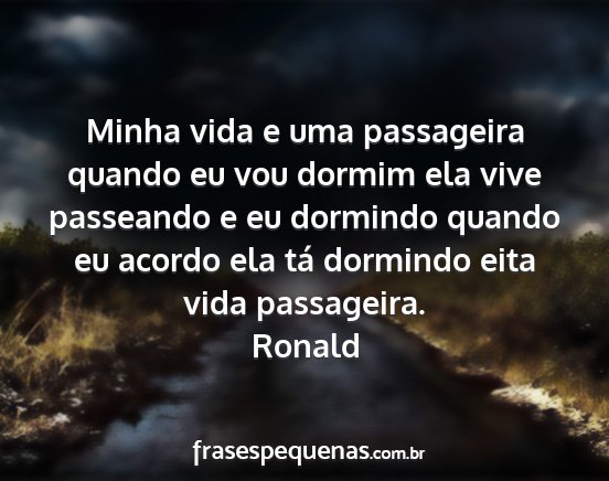 Minha vida e uma passageira quando eu vou dormim ela vive passeando e eu dormindo quando eu acordo ela tá dormindo eita vida passageira.Ronald