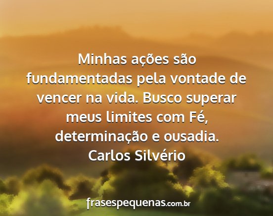 Minhas ações são fundamentadas pela vontade de vencer na vida. Busco superar meus limites com Fé, determinação e ousadia.Carlos Silvério