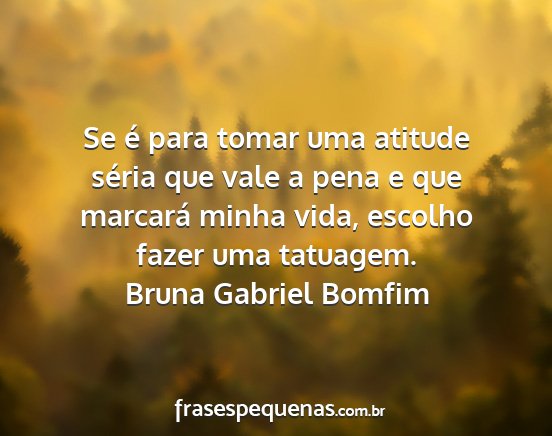 Se é para tomar uma atitude séria que vale a pena e que marcará minha vida, escolho fazer uma tatuagem.Bruna Gabriel Bomfim