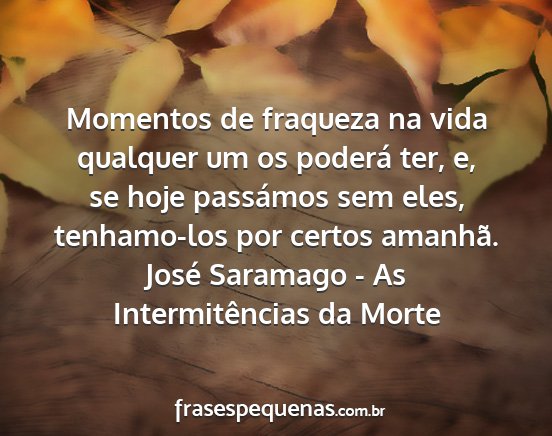 Momentos de fraqueza na vida qualquer um os poderá ter, e, se hoje passámos sem eles, tenhamo-los por certos amanhã.José Saramago - As Intermitências da Morte