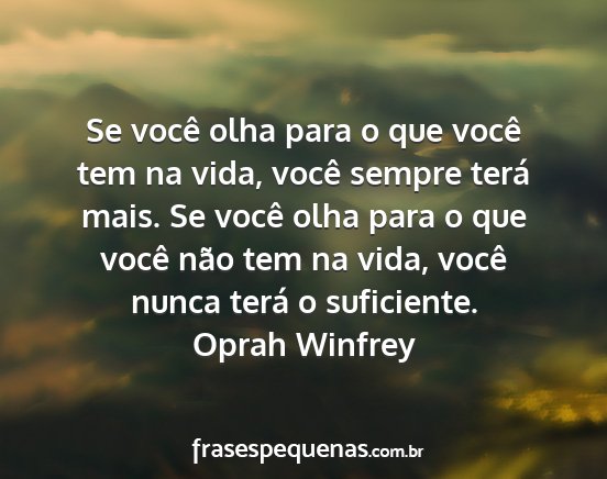 Se você olha para o que você tem na vida, você sempre terá mais. Se você olha para o que você não tem na vida, você nunca terá o suficiente.Oprah Winfrey